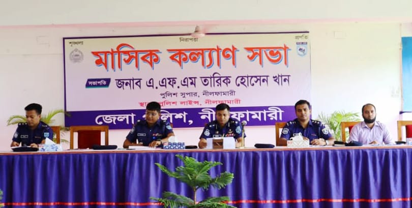 রবিবার ২৪ই আগস্ট সকাল ১০.৩০ ঘটিকায় নীলফামারী পুলিশ লাইন্স ড্রিল সেডে নীলফামারী জেলা পুলিশের মাসিক কল্যাণ সভা অনুষ্ঠিত হয়। উক্ত কল্যাণ সভায় সভাপতিত্ব করেন মাননীয় পুলিশ সুপার, নীলফামারী এ.এফ.এম. তারিক হোসেন খান।