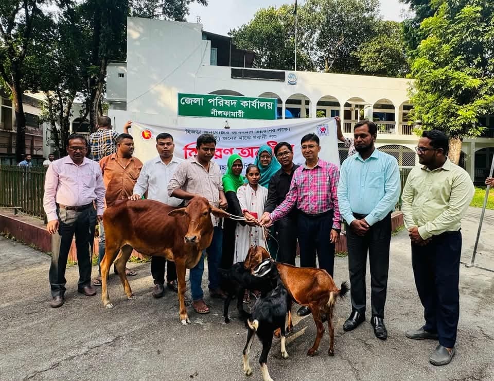 আজ ৩ সেপ্টেম্বর, ২০২৫ জেলা পরিষদ চত্বরে এই দু'জন উপকারভোগীদের হাতে গাই-বাছুর ও ছাগল হস্তান্তর করা হয়। প্রত্যেকের জন্য একটি গাই বাছুর ও ৩টি ছাগল হস্তান্তর করা হয়।