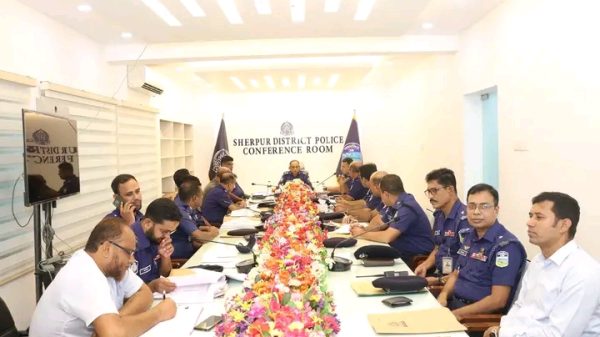 শেরপুর জেলা পুলিশের মাসিক অপরাধ পর্যালোচনা সভা অনুষ্ঠিত