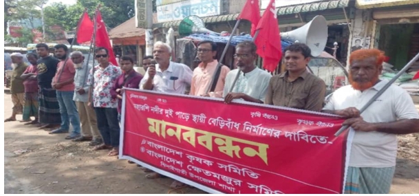 শেরপুর জেলার ঝিনাইগাতী উপজেলাতে মহারশি নদীর দুই পাড়ে স্থায়ী বেড়িবাঁধ নির্মাণের দাবিতে মানববন্ধন করেছে বাংলাদেশ কৃষক সমিতি ও বাংলাদেশ ক্ষেতমজুর সমিতি ঝিনাইগাতী উপজেলা শাখা। ৭ অক্টোবর মঙ্গলবার সকাল ১১টায় উপজেলা সদর বাজারের প্রধান সড়কে ঘণ্টাব্যাপী এ মানববন্ধন অনুষ্ঠিত হয়।