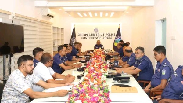 এ সময় উপস্থিত ছিলেন উপপরিচালক স্থানীয় সরকার মিজ আরিফা সিদ্দিকা, অতিরিক্ত জেলা প্রশাসক (সার্বিক) মোঃ শাকিল আহমেদ, সিভিল সার্জন শেরপুর ডা. মুহাম্মদ শাহীন এবং বিভিন্ন দপ্তরের উর্দ্ধতন কর্মকর্তাগণ।
