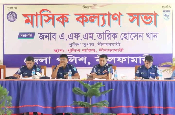 বুধবার ২২ অক্টোবর সকাল ১০.৩০ ঘটিকায় নীলফামারী পুলিশ লাইন্স ড্রিল সেডে নীলফামারী জেলা পুলিশের মাসিক কল্যাণ সভা অনুষ্ঠিত হয়। উক্ত কল্যাণ সভায় সভাপতিত্ব করেন পুলিশ সুপার, নীলফামারী এ.এফ.এম. তারিক হোসেন খান।