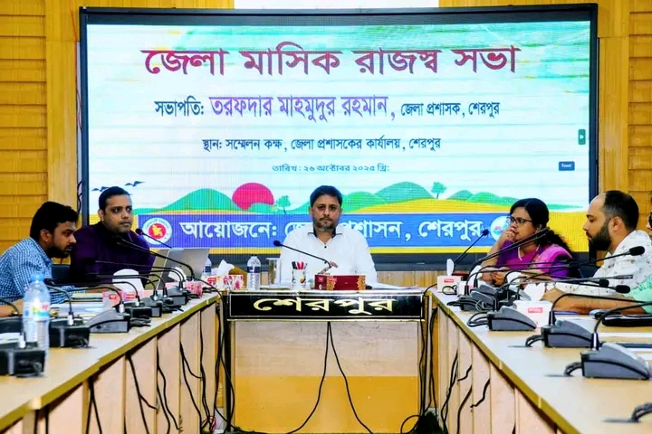 আজ ২৬ অক্টোবর ২০২৫ (রবিবার), জেলা প্রশাসক ও জেলা ম্যাজিস্ট্রেট, শেরপুর, তরফদার মাহমুদুর রহমান এর সভাপতিত্বে জেলা প্রশাসকের কার্যালয়, শেরপুর-এর সম্মেলন কক্ষে 'জেলা মাসিক রাজস্ব সভা' অনুষ্ঠিত হয়।
